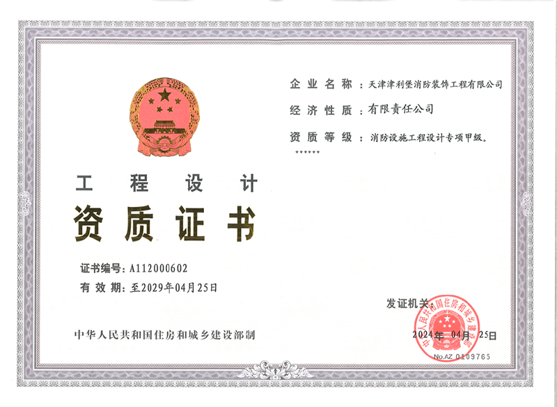 天津津利堡消防裝飾工程有限公司是注冊(cè)于天津經(jīng)濟(jì)技術(shù)開發(fā)區(qū)、具有獨(dú)立企業(yè)法人資格的工程公司,是專門從事消防系統(tǒng)的設(shè)計(jì)、安裝、供貨、維修、保養(yǎng)及咨詢服務(wù)的現(xiàn)代化企業(yè)。具有建設(shè)部頒發(fā)的消防行業(yè)最高等級(jí)資質(zhì):消防設(shè)施工程專業(yè)承包壹級(jí)資質(zhì)、消防設(shè)施工程設(shè)計(jì)專項(xiàng)甲級(jí)資質(zhì),同時(shí)具有建筑裝修裝飾工程專業(yè)承包壹級(jí)資質(zhì)、建筑機(jī)電設(shè)備安裝工程專業(yè)承包壹級(jí)資質(zhì)、電子與智能化工程專業(yè)承包貳級(jí)資質(zhì)、機(jī)電工程施工總承包貳級(jí)資質(zhì)、施工勞務(wù)(備案事項(xiàng))不分等級(jí)資質(zhì),符合應(yīng)急管理部發(fā)布的《消防技術(shù)服務(wù)機(jī)構(gòu)從業(yè)條件》,消防設(shè)施維護(hù)保養(yǎng)檢測(cè)及消防安全評(píng)估的相關(guān)信息已錄入應(yīng)急管理部的社會(huì)消防技術(shù)服務(wù)信息系統(tǒng),并取得電氣裝置消防安全檢測(cè)資質(zhì)。